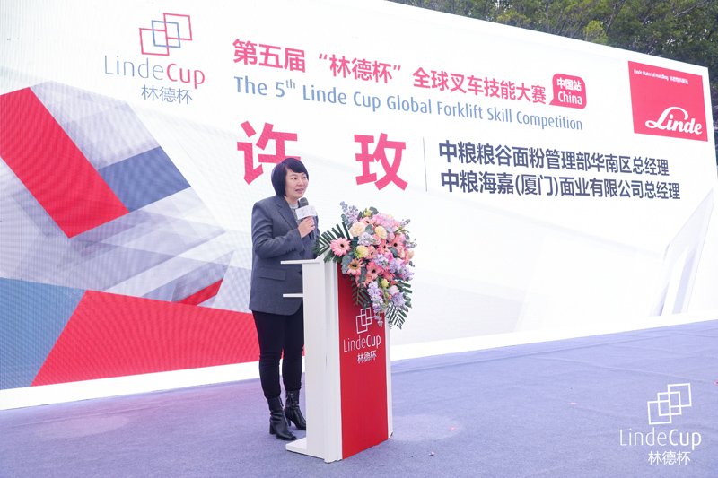 一直以來,林德(中國)始終關(guān)注客戶需求,為客戶提供優(yōu)質(zhì)的產(chǎn)品和物料搬運整體解決方案。現(xiàn)場,中糧糧谷面粉管理部華南區(qū)總經(jīng)理、中糧海嘉(廈門)面業(yè)有限公司總經(jīng)理許玫在開幕式中表示對本次賽事充滿了期待,對于與林德的合作也充滿了信心:“近年來,林德(中國)不斷追求創(chuàng)新,開發(fā)了一系列自動化、數(shù)字化、新能源的產(chǎn)品和解決方案,以高度靈活性和強(qiáng)大的實力助力我們企業(yè)向智慧化、綠色化物流轉(zhuǎn)型升級。”目前,共有數(shù)十臺定制化、不同型號的林德叉車在倉庫運轉(zhuǎn),承擔(dān)著中糧海嘉小麥生產(chǎn)、出庫、裝車發(fā)貨等環(huán)節(jié)的搬運。