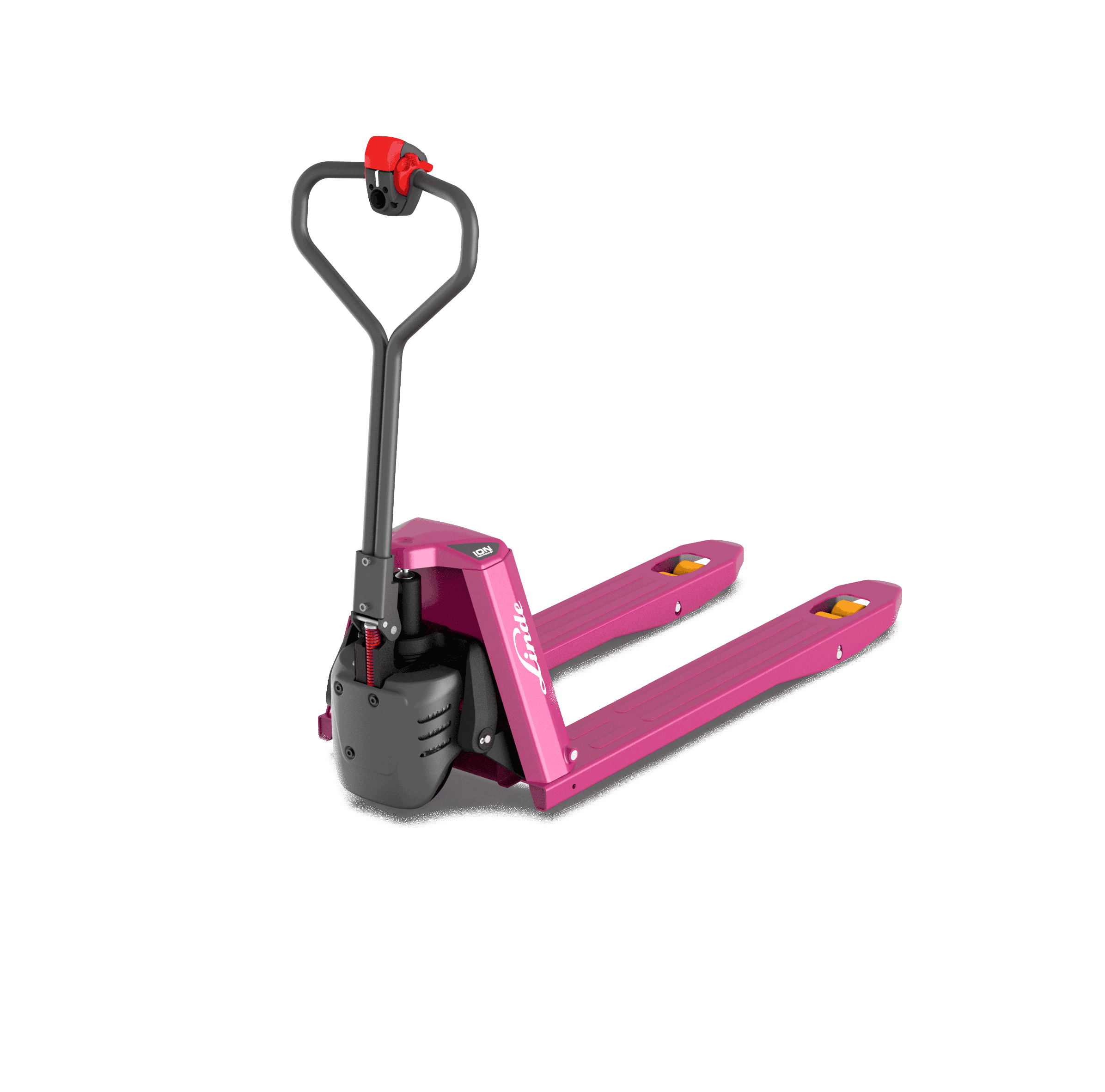 The chassis design assures that the operator remains well protected within the truck contours while driving. The ergonomic twin grip steering control incorporates a wrap-around hand guard. For additional safety tractor and load transporter are equipped with knee protection.