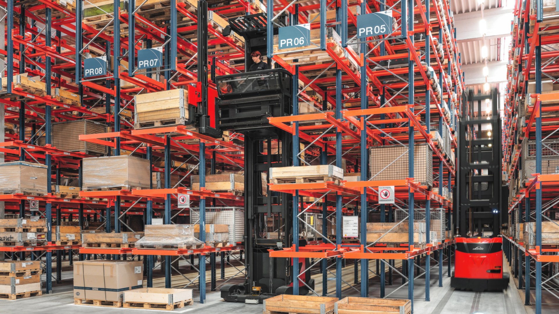 High handling performance and particularly safe handling processes in narrow aisles – Linde Material Handling has designed its turret trucks and vertical order pickers to meet the challenges of very narrow aisles.
